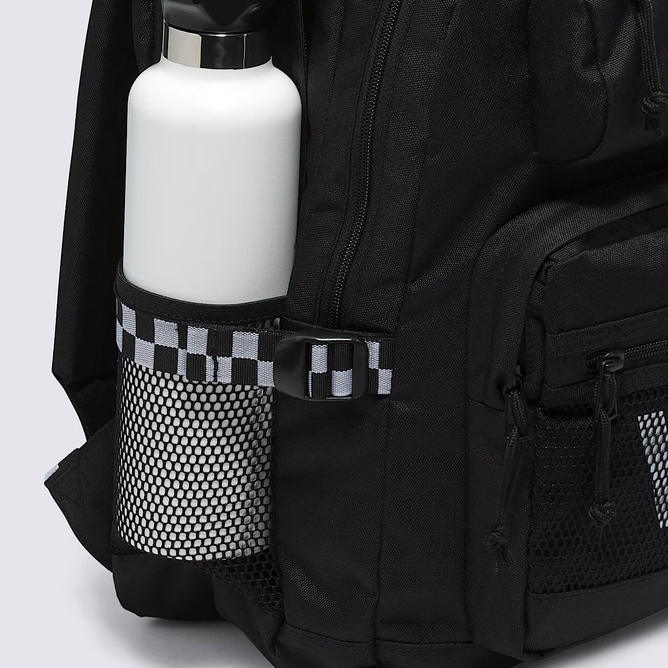 - Дві передні кишені для невеликих речей з органайзером і сітчаста кишеня на блискавці з великим білим лого Vans